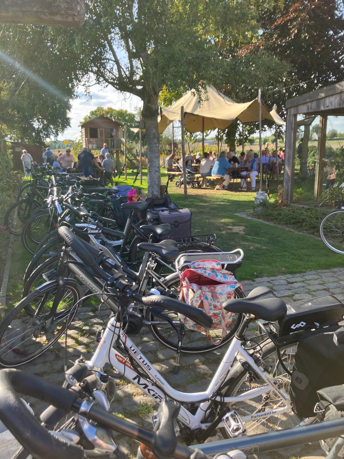 Alle fietsers en wandelaars zijn van harte welkom om even te pauzeren op 't Mollekenshof. Geniet van de rust en de bloemen, samen met een glaasje of een versnapering met een knipoog naar de buurt of de omgeving.